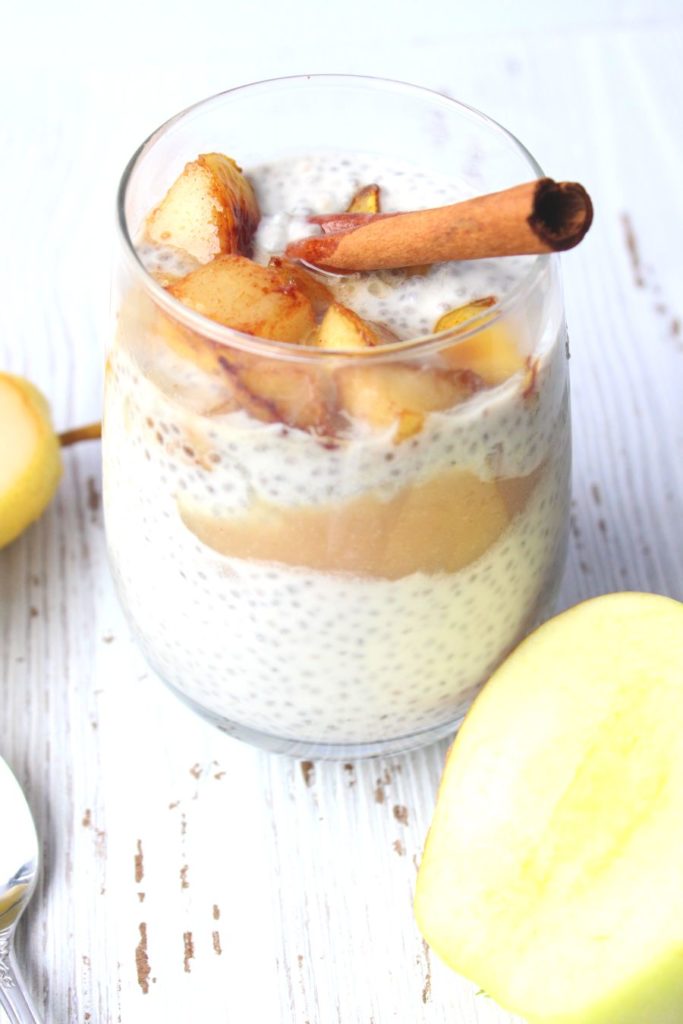 Add chia pudding to a cup, add apple/pear sauce and top with chia pudding. Top pudding with cooked apple and pears.