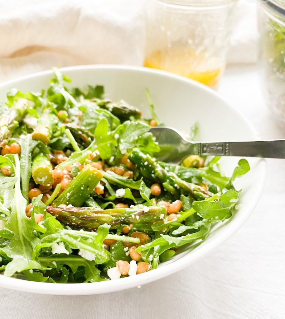 Asparagus is my favorite spring vegetables. In this salad, the asparagus is sauteed in olive oil, salt and pepper followed with a squeeze of fresh lemon. So good. Asparagus is packed with nutrients including fiber, folate , vitamins A,C and K as well as potassium, a mineral that plays a role in regulating blood pressure.