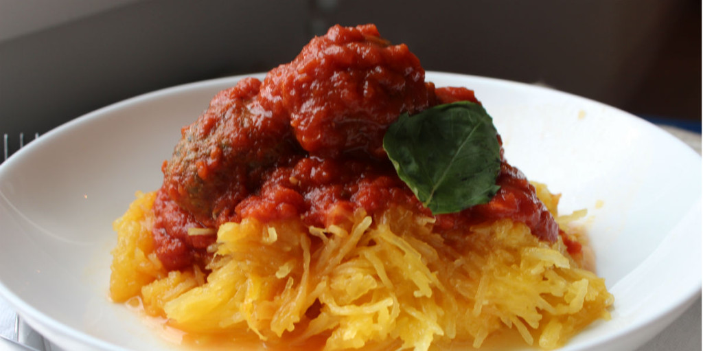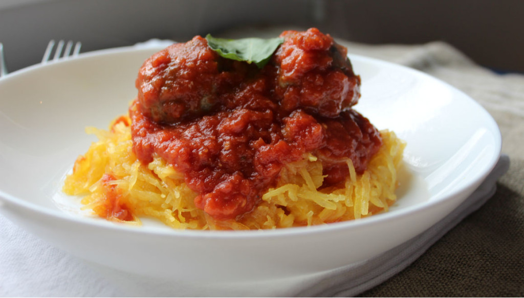 This spaghetti squash with pesto turkey meatballs is packed with nutrients .Spaghetti squash belongs to the winter squash family and is an excellent source of beta carotene, a precursor to vitamin A. Beta carotene, an antioxidant, that may protect us from certain cancers and heart disease. Squash is also a good source of folate, potassium, and vitamin C. With only 40 calories in half a cup and no fat, winter squash should make a regular appearance on your grocery list this winter. Tomato products such as tomato sauce, are a good source of lycopene, an antioxidant which plays a role in preventing prostate cancer.